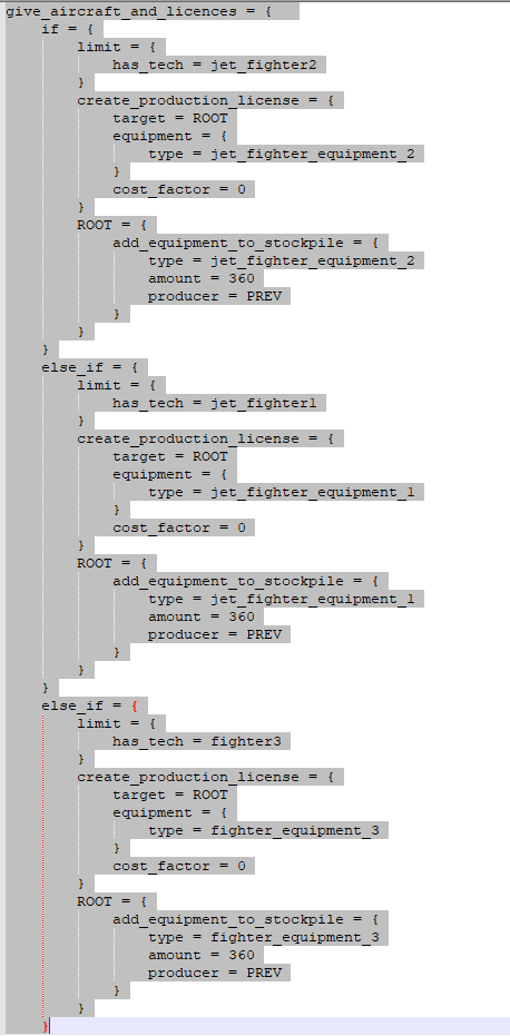 I was modding a bit and noticed an issue with the Focus "British Aircraft Manufacturing" or rather with the scripted effect that is used.The focus should give the player a amount of planes and a license, which does happen for the "Interwar small airframe". But when the Uk has researched "Basic small airframe" the focus still only gives you the "Interwar small airframe".