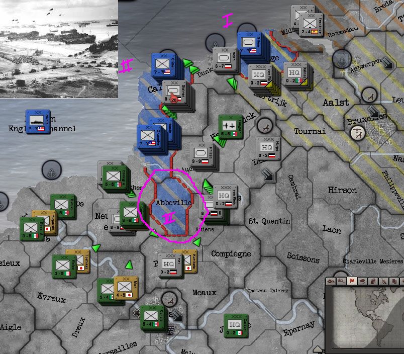 The Eastern Allied holding attack was inefficient and the Yanks were thrown back into their landing crafts. Although the amphibious Western Allied holding attack was still ongoing, it did little to hinder the furious Axis attack on Boulogne.