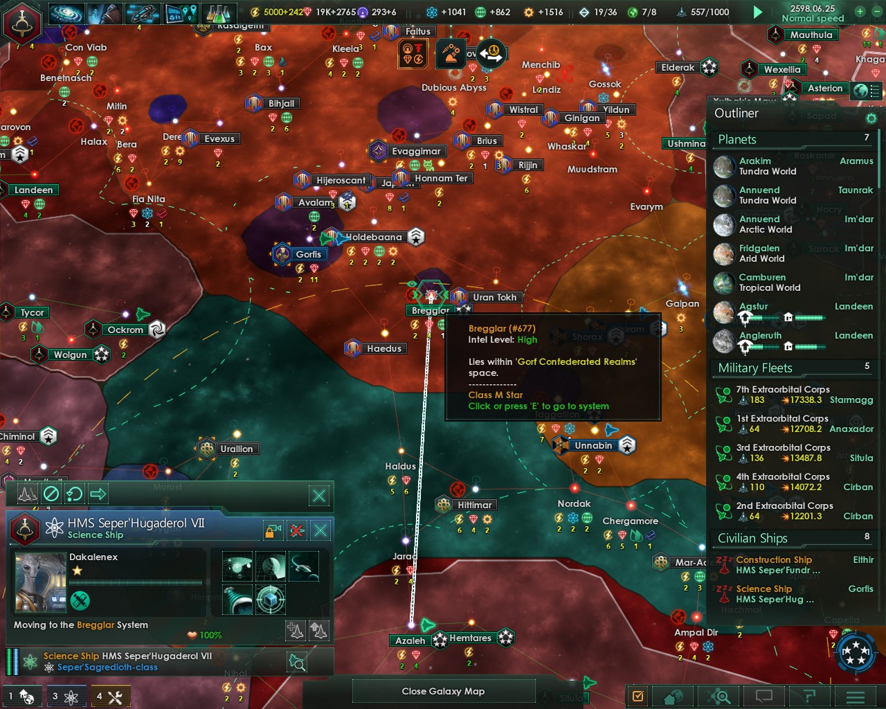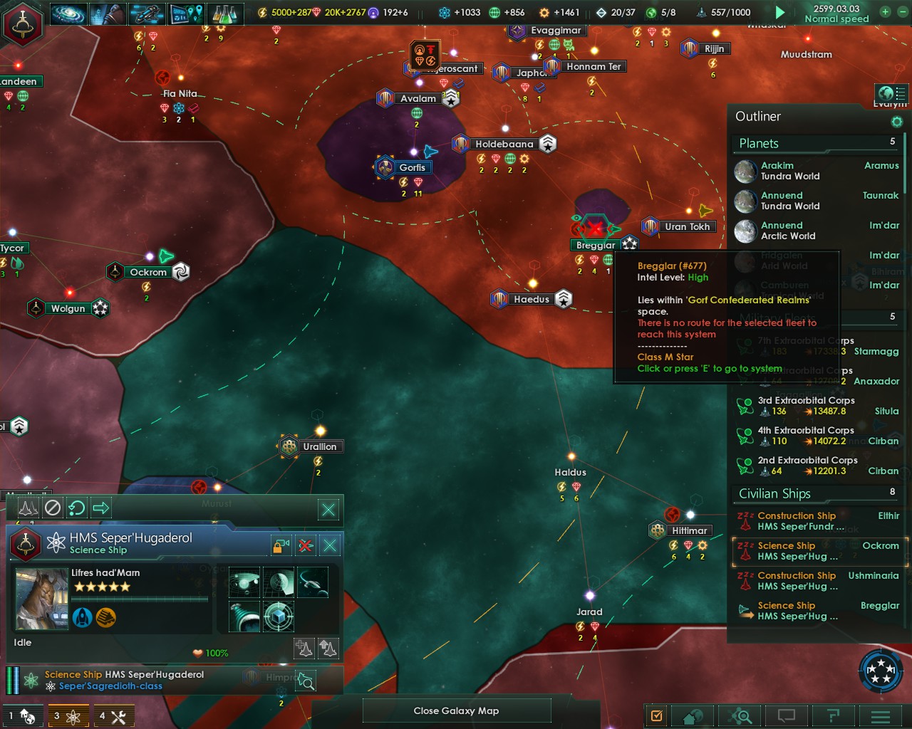 In this picture: It says I cannot go from Ockrom to Bregglar, even though it is within range of the warp drive.
