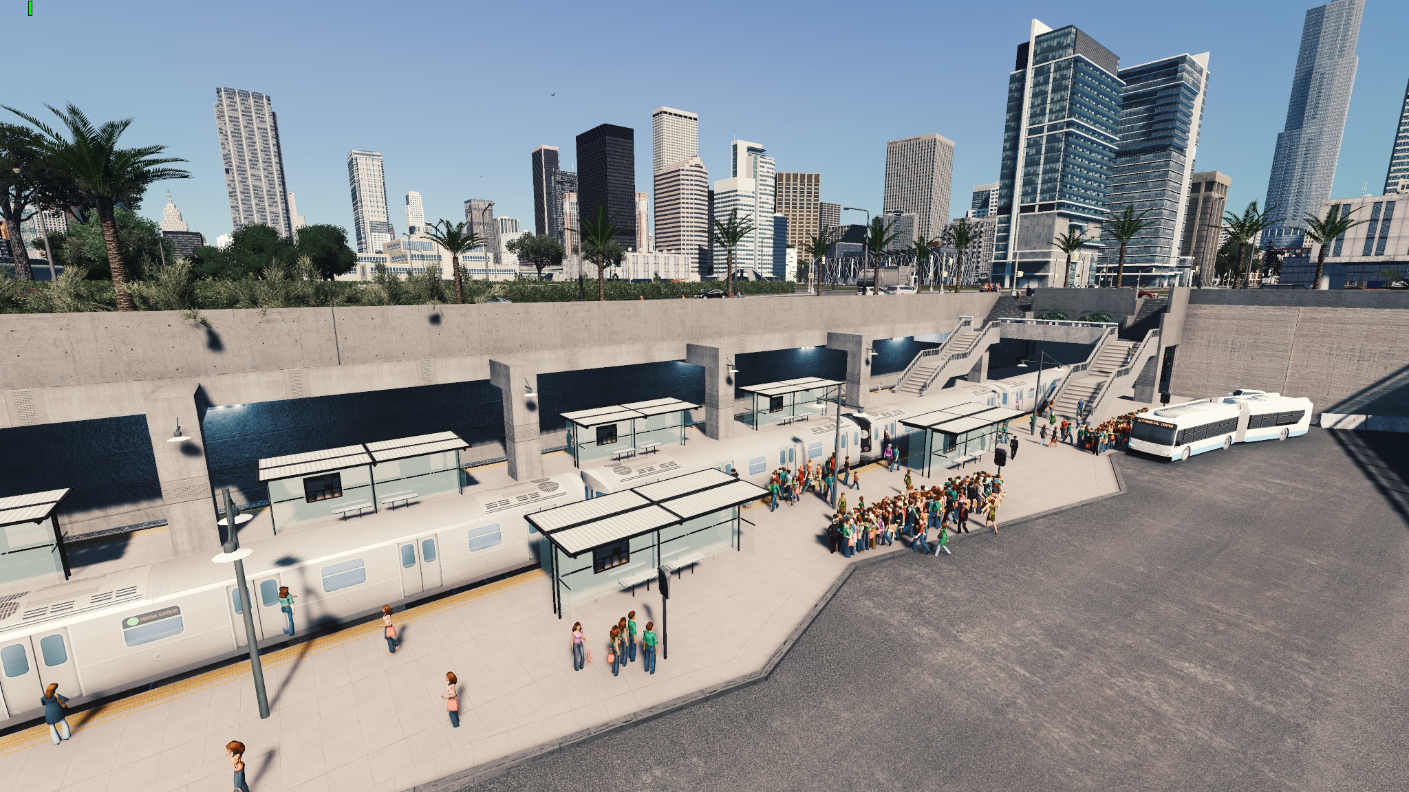 Here are some screens of the Butler district station with it's modern development covering the tracks and connecting the two sides. From the last cinematic episode!