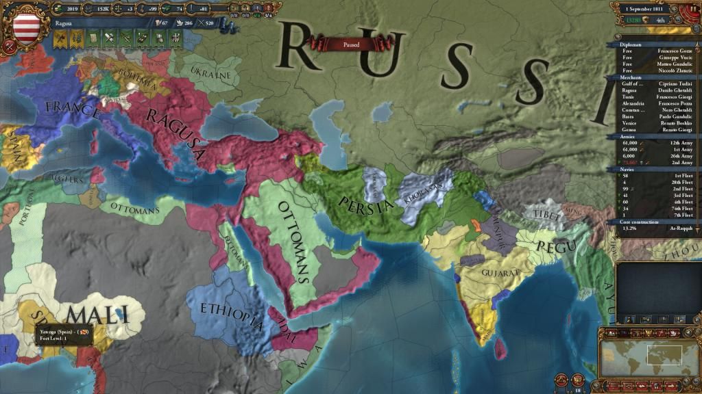 That superior "army quality" nation was riding -3 stab and got forced out inside 2 years, getting to enjoy internal conflicts. Russia got a dose of non-existence. Ikkiks mentioning -25% attrition resistance is quite relevant; that policy opens up some options that work much better and faster with them than without.