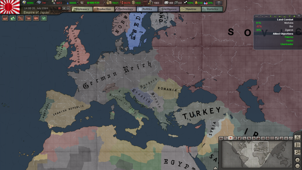 Now it is Beginning of 1944 and any attemps to assault on USA are failing.