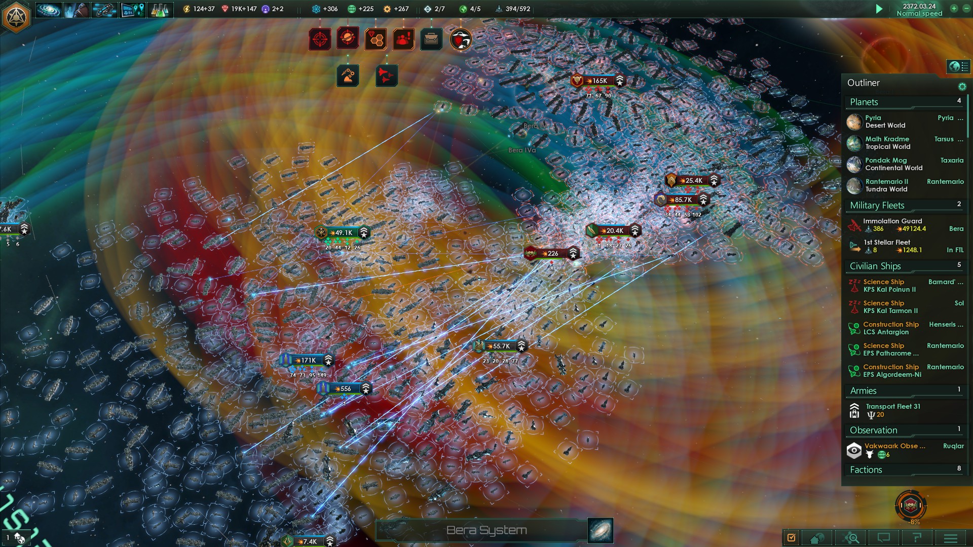 Ok so I'm nearly at the end of my current play through I've taken out two AEs, the Scourge, and everything else except the extra-dimensional dudes. To beat the AEs I had to build a fleet unlike ever before (for me) and it hit the 250k power level about 350 corvettes, 200 dessies, 200 cruisers, and 80 battleships.