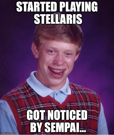 People are too busy hyping them selves out to put up new meme content.Where are the memes for the shear amount of content we are getting for Stellaris. At this point I'm like I'm ready I'm ready.