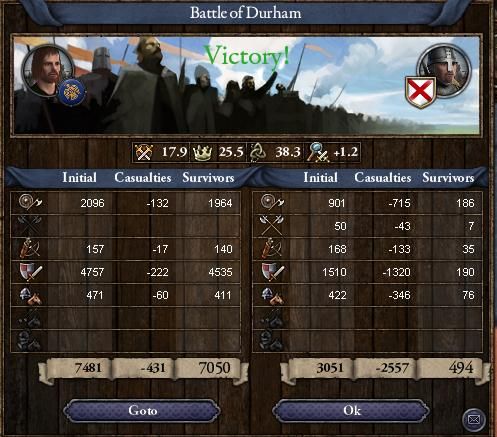 They were too slow, however, and were caught at Durham unawares. They had been distracted by the presence of 2,000 Norsemen who served his brother, Ivar. The armies had been evenly matched, and were cautiously about committing to full battle. However, their caution would be their doom. Halfdan had come up and joined the 2,000 extra men, many of whom had captured mounts making them a deadly force. Now, the battle was 7,000 Norsemen against only 3,000 Saxons.