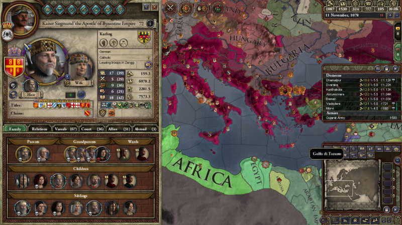 And this consolidated the Karling power on Europe. West Francia has been West Francia for centuries, England saw a couple of Karlings on the throne too, Anatolia was later gained on a crusade and is ruled by anglo-saxon Karlings.