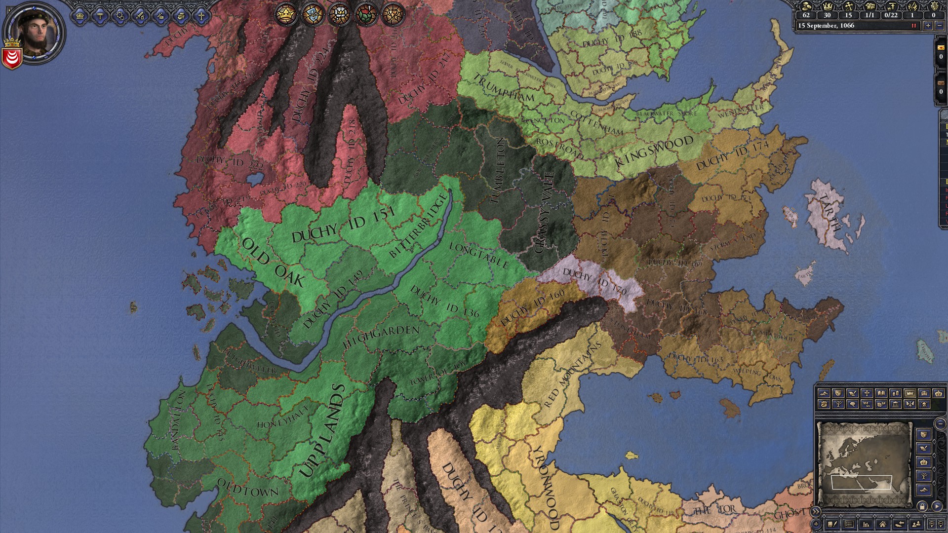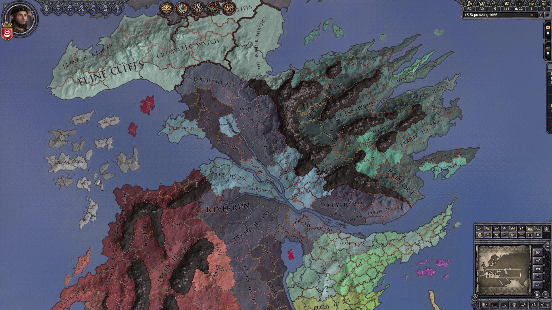 With over 1400 Provinces, the mod rivals the Vanilla game and exceeds the 'Game of Thrones Mod' in regards to the number of provinces. However, it will likely feature far fewer events and simplified mechanics for the purpose of stable and engaging multiplayer.